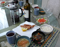 本日のメイン料理はエイのフライ。 軟骨の歯ごたえがおもしろい食感。味付けには米こうじを使いました。毎日の食事は野菜たっぷりが基本です。 キッチンで料理をしつつ、仕事の諸々を頭の中で整理していくのが私流。 今日は食事と一緒に赤ワインを少々…
